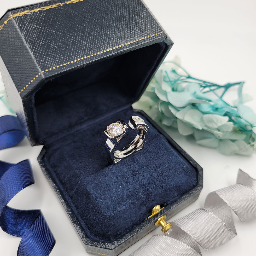 MR286 - 1 Carat Round Cut Moissanite U-Shaped Open Ring - 1卡圓形莫桑石U形上開口戒指