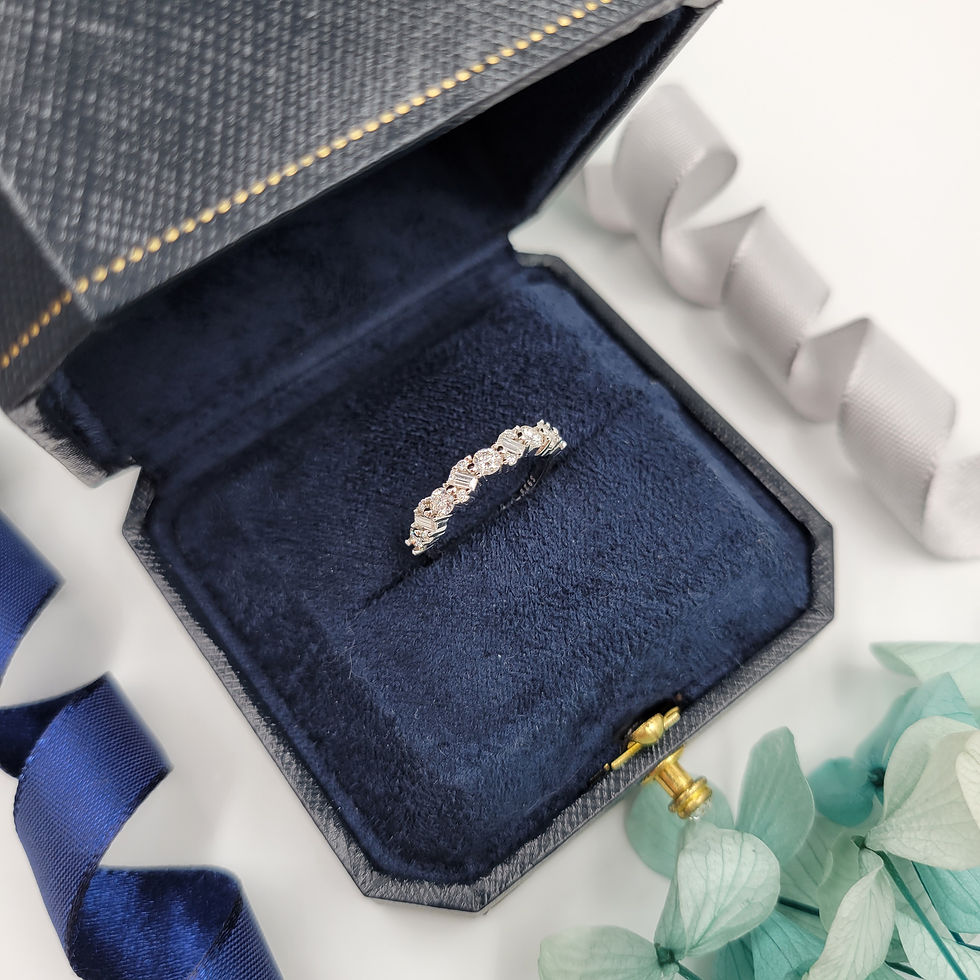 MR278 - 1 Carat Emerald Cut and Round Cut Moissanite band - 1卡祖母綠形切割圓形莫桑石排戒